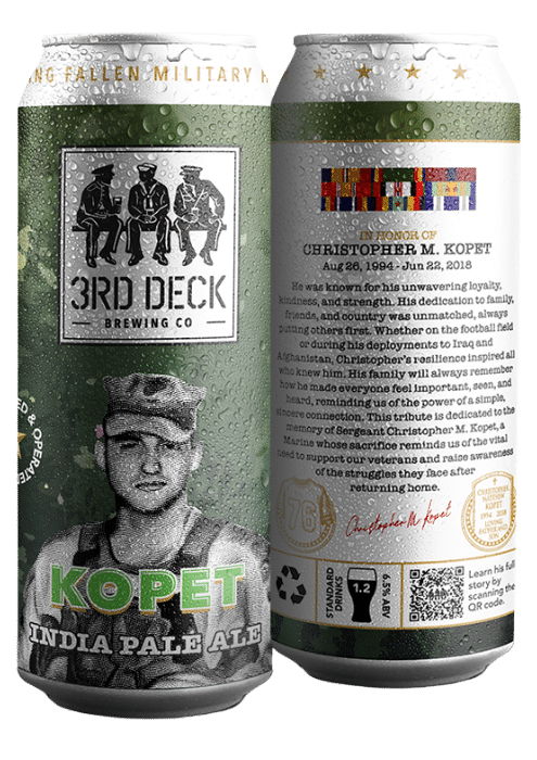 Expressive and aromatic, this IPA bursts with tropical fruit and pine, with a crisp, balanced finish. Full of character and brewed to stand out, it’s memorable sip after sip. This beer honors the life and legacy of Christopher M. Kopet with bold flavor and purpose in every sip.