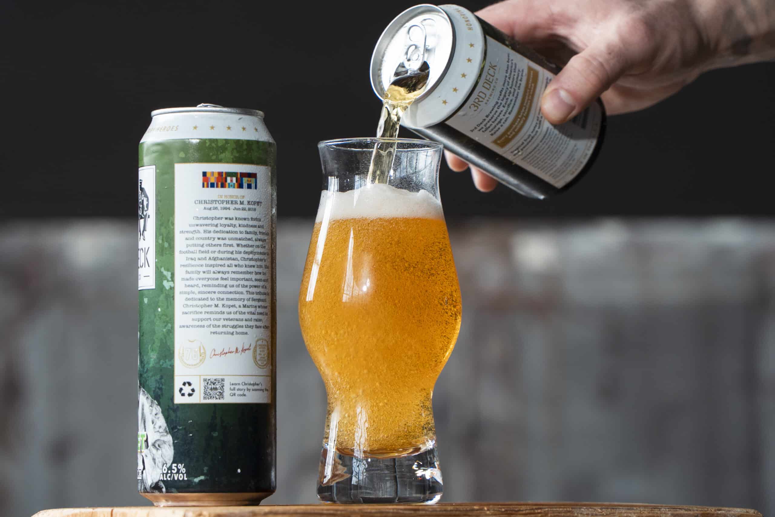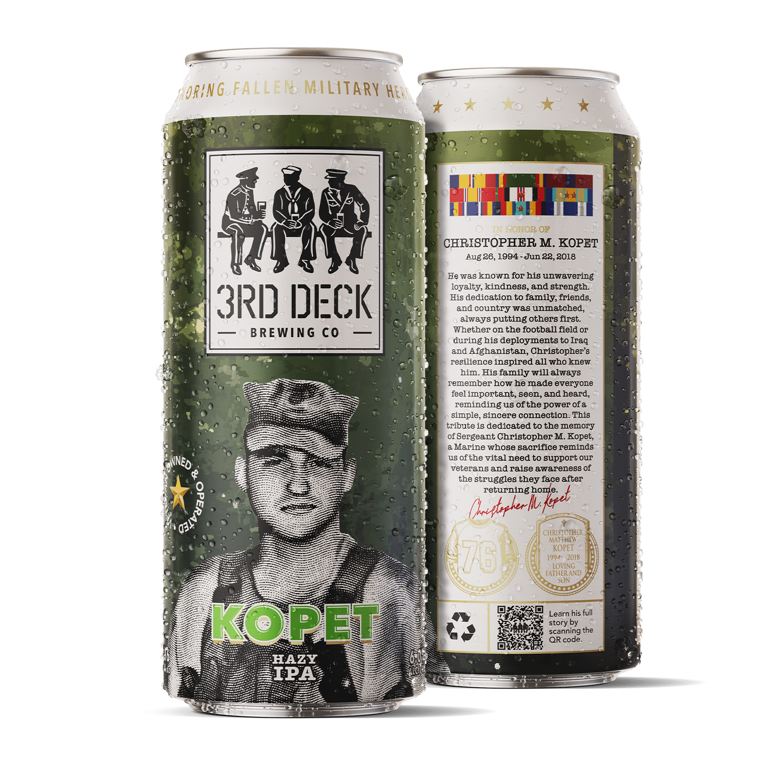 Expressive and aromatic, this IPA bursts with tropical fruit and pine, with a crisp, balanced finish. Full of character and brewed to stand out, it’s memorable sip after sip. This beer honors the life and legacy of Christopher M. Kopet with bold flavor and purpose in every sip.